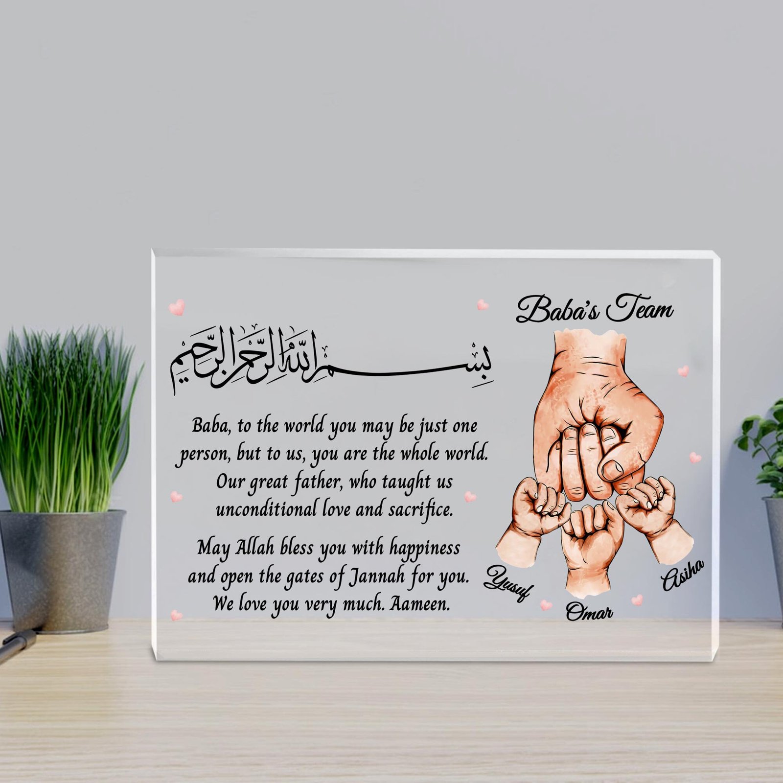 Personalized Islamic Dad Acrylic Block, Parents Gift, Father’s Day Gift For Muslim Dad, Islamic Gifts For Him, Islamic Dad Gift, Eid Gift Whether it’s to honor your dad on Eid or show your gratitude on Father’s Day, this personalized acrylic block is a beautiful reflection of love, respect, and Islamic values.
